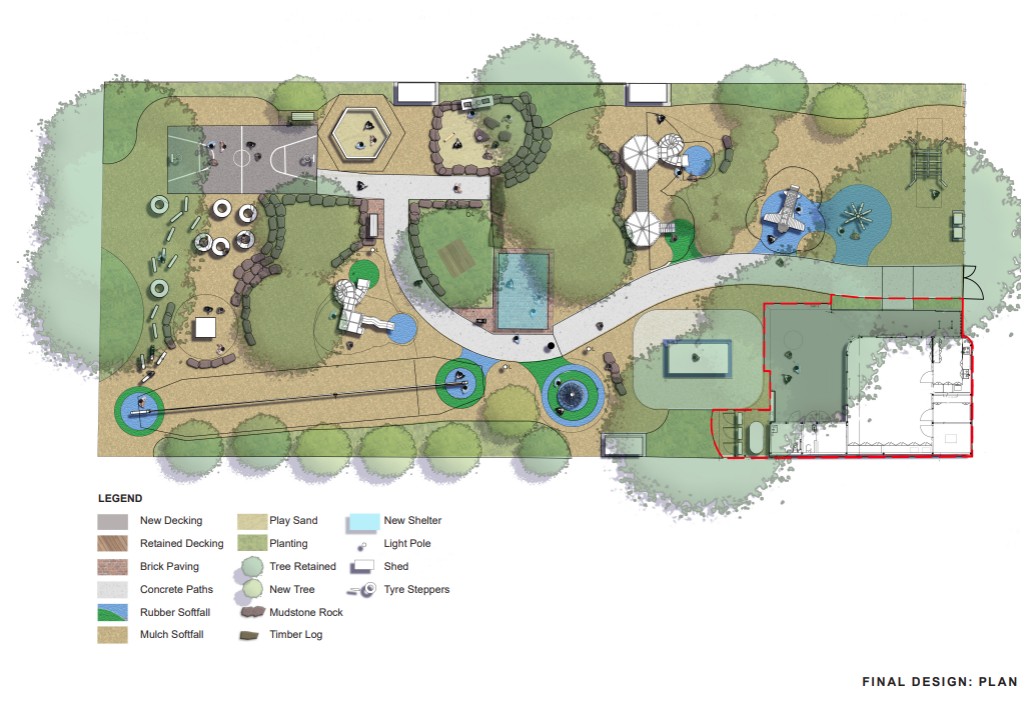 A local artist will be engaged in early 2026 to work with program children and staff to develop artworks that can be installed in the new playground.